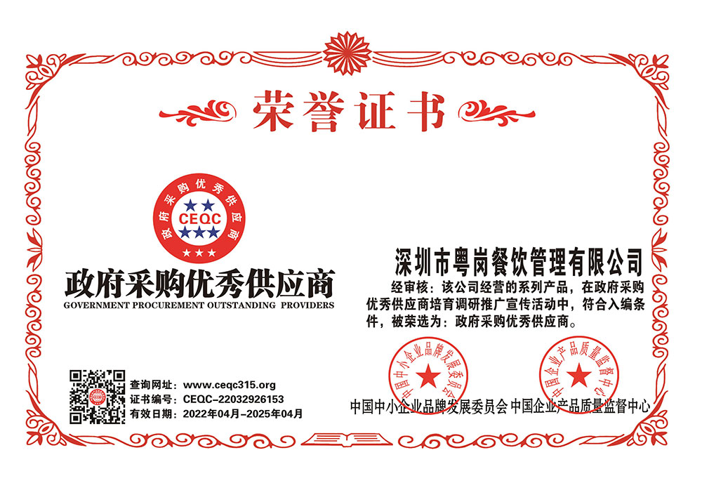 粵崗蔬菜配送榮譽(yù)墻
